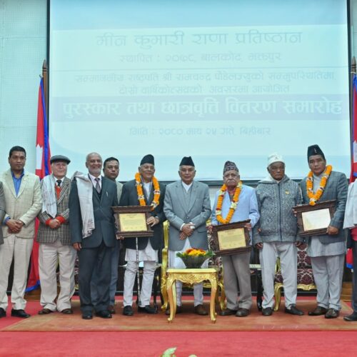काठमाडौँ । राष्ट्रपति रामचन्द्र पौडेलले विकासको मूल आधार भ्रष्टाचारमुक्त समाज र सुशासन नै भएको बताएका छन् । मीनकुमारी राणा प्रतिष्ठानले राष्ट्रपति भवनमा बिहीबार आयोजना गरेको पुरस्कार वितरण कार्यक्रमलाई सम्बोधन गर्दै राष्ट्रपति पौडेलले दिगो शान्ति, विकास र सुशासनबाट नै गरिब, सीमान्तकृत, पिछडिएको क्षेत्र र वर्गका जनताको मुहारमा खुसी ल्याउन सकिने बताए ।