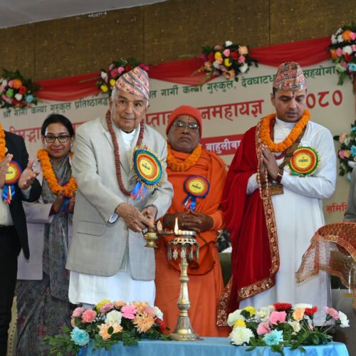 राष्ट्रपति पौडेलले कन्यालाई वेद शिक्षा प्रदान गर्नका लागि गार्गी कन्या गुरुकुल विद्याश्रमले खेलेको भूमिकाको उच्च प्रशंसा गरे । “समाजलाई सभ्य, सुसंस्कृत र समृद्ध बनाउन नारीहरूलाई सुशिक्षित, स्वावलम्बी र सशक्त बनाउनुपर्छ,”– उनले भने ।