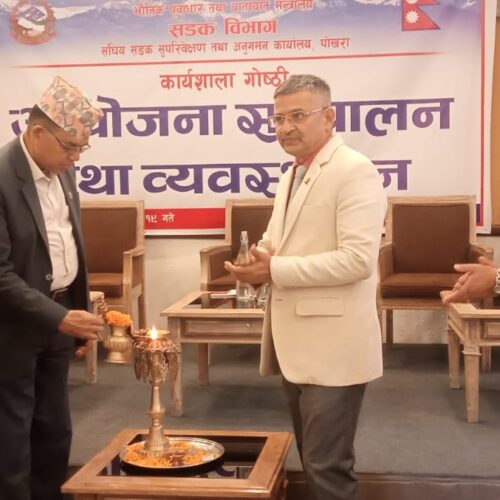सडक विभागद्वारा पोखरामा आयोजना गरिएको ‘आयोजना सञ्चालन तथा व्यवस्थापनसम्बन्धी दुई दिने कार्यशाला’ समापनमा आज उनले विकास निर्माणलाई तीव्रता दिई आर्थिक समृद्धिको लक्ष्य हासिल गर्नुपर्ने भएकाले सोही ढंगबाट तदारुकताका साथ काम गर्न निर्देशन दिएका हुन् ।