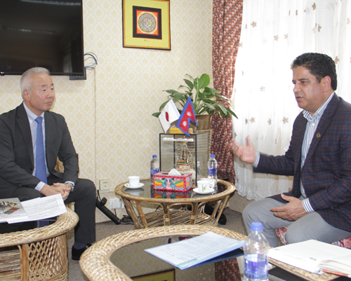 काठमाडौँ । उद्योग, वाणिज्य तथा आपूर्तिमन्त्री दामोदर भण्डारीसँग नेपालका लागि जापानका राजदूत मायदा तोरूले शिष्टाचार भेट गरेका छन् ।
