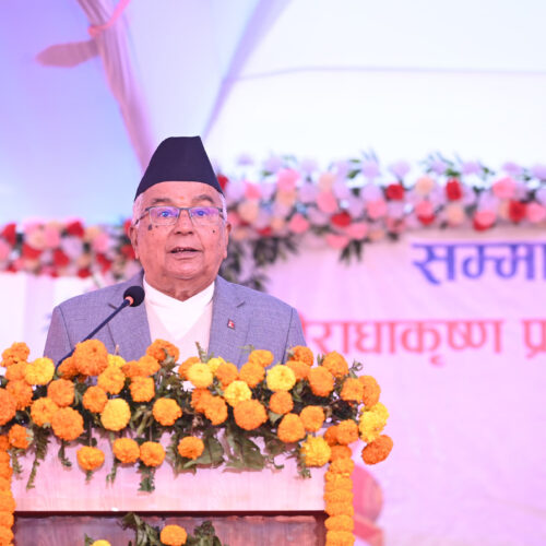 “यसका लागि मानिसभित्र आपसी मित्रता, प्रेम, सद्भाव र सहअस्तित्वको पवित्र विचार सृजना गर्न आवश्यक छ, आज भौतिक विकाससँगै आध्यात्मिक चेतना, ज्ञान र जागरणको महसुस वर्तमान विश्वले गरिरहेको छ, आज मान्छे भौतिक विकासभित्र सुख र शान्तिका लागि भांैंतारिहेको यहि कारण हो”, राष्ट्रपति पौडेलले भने ।