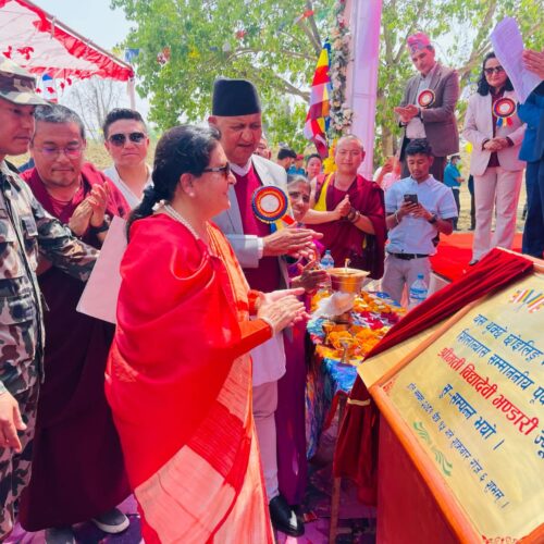 लुम्बिनीमा शुक्रबार थुक्छे छोइलिङ्ग मोनास्ट्री गुम्बाको शिलान्यास गर्दै पूर्वराष्ट्रपति भण्डारीले बुद्धका शान्ति, करुणा र शिक्षाको महत्व आजको समयमा झनै बढेको उल्लेख गराइन् ।
