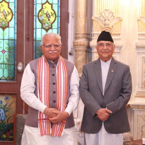काठमाडौँ । प्रधानमन्त्री केपी शर्मा ओलीसँग भारतका विद्युत, आवास तथा शहरी मामिलामन्त्री मनोहरलाल भट्टरले आज शिष्टाचार भेट गरेका छन् ।