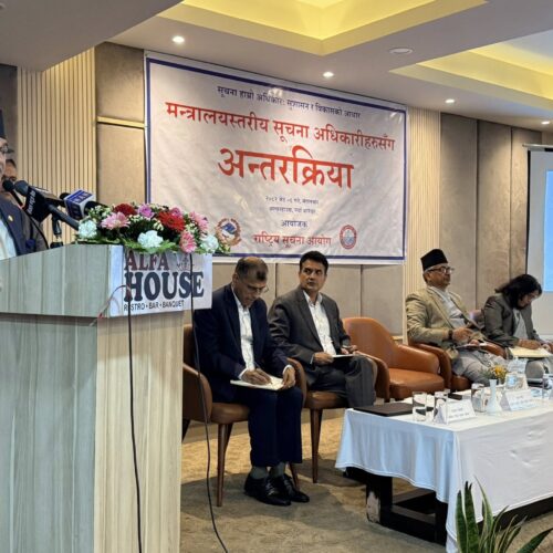 राष्ट्रिय सूचना आयोगले मंगलबार आयोजना गरेको मन्त्रालयस्तरीय सूचना अधिकारीहरूसँग अन्तक्रियामा उनले संविधानमा सूचनाको हकलाई मौलिक हकका रुपमा राखिएको बताए ।