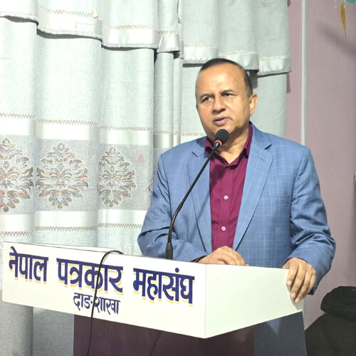 प्रेस चौतारी नेपाल दाङ शाखाले बुधबार आयोजना गरेको पत्रकार सम्मेलनमा महासचिव पोखरेलले दुई ठूला दल कांग्रेस र एमाले मिलेर बनेको वर्तमान सरकार जनताका निराशा अन्त्य गर्दै आर्थिक विकासमार्फ जीवनस्तर उकास्ने काममा प्रयासरत रहेको उल्लेख गरे।