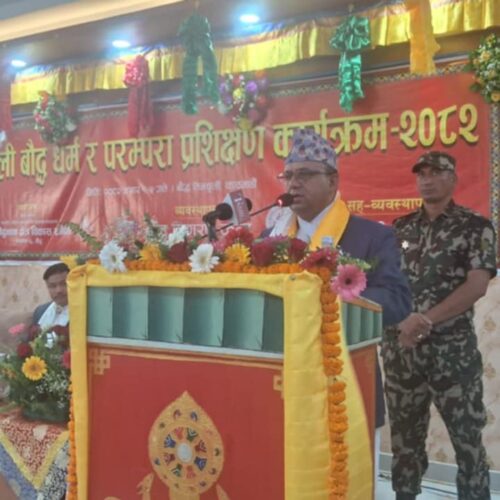 बौद्धनाथ क्षेत्र विकास समितिले ‘हिमाली बौद्ध धर्म र परम्परा’ शीर्षकमा आइतबार आयोजना गरेको पाँचदिने प्रशिक्षणमा मन्त्री पाण्डेले बुद्ध र वेदभूमि हाम्रो देश समान धार्मिक विश्वासका कारण दुवै राष्ट्रका निम्ति आस्थाका केन्द्र भएका बताए ।