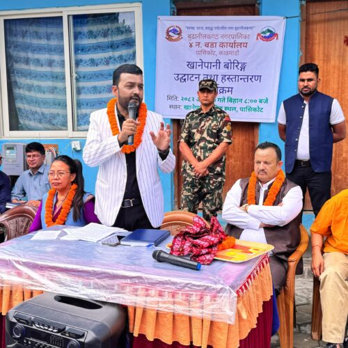 त्यस अवसरमा बागमती प्रदेश खानेपानी तथा सिँचाइमन्त्री श्यामबहादुर खड्का, बूढानीलकण्ठ नगरपालिका प्रमुख मिठाराम अधिकारी, उपप्रमुख अनिता लामा, वडा नं ४ का अध्यक्ष राम केसी, खानेपानी तथा ढल व्यवस्थापन विभागका महानिर्देशक रामकुमार श्रेष्ठलगायत उपपिस्थत थिए ।