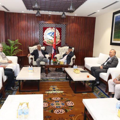 प्रधानमन्त्री निवास, बालुुवाटारमा जारी बैठकमा नेपाली कांग्रेसका सभापति शेरबहादुर देउवा, उपसभापति पूर्णबहादुर खड्का, गृहमन्त्री रमेश लेखक, नेकपा (एमाले) महासचिव शङ्कर पोखरेल, उपमहासचिव विष्णुुप्रसाद रिमालसहभागी छन् । उनीहरुबीच समसामयिक परिस्थिति, बाढी पहिरो र डुुबानको क्षति तथा उद्धारलगायत विषयमा छलफल भइरहेको बताइएको छ ।