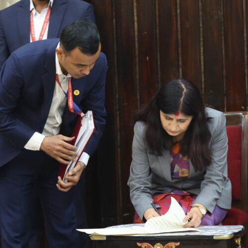 काठमाडौँ । नवनियुक्त सङ्घीय मामिला तथा सामान्य प्रशासनमन्त्री भगवती न्यौपानेले आज साँझ सिंहदरबारस्थित मन्त्रालयमा पदबहाली गरेकी छन् । उनी मन्त्रालय पुग्दा मन्त्रालयका सचिव रविलाल पन्थलगायतका कर्मचारीले स्वागत अभिवादन गरेका थिए ।