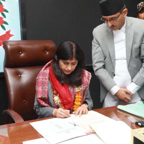 काठमाडौँ । नवनियुक्त सङ्घीय मामिला तथा सामान्य प्रशासनमन्त्री भगवती न्यौपानेले आज साँझ सिंहदरबारस्थित मन्त्रालयमा पदबहाली गरेकी छन् । उनी मन्त्रालय पुग्दा मन्त्रालयका सचिव रविलाल पन्थलगायतका कर्मचारीले स्वागत अभिवादन गरेका थिए ।