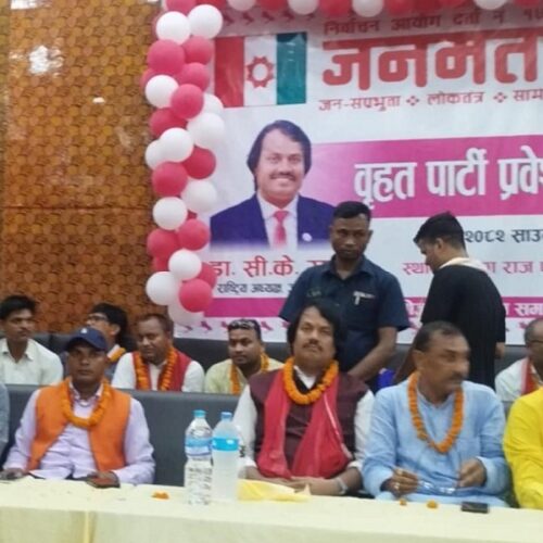 पार्टीका जिल्ला अध्यक्ष शिवनाथ पटेलको अध्यक्षतामा सम्पन्न कार्यक्रममा संविधानसभा सदस्य प्रमोद गुप्ता, मधेस प्रदेशसभाका निवर्तमान सदस्य पारस साहलगायत विभिन्न पार्टीका नेता कार्यकर्ता जनमतमा प्रवेश गरेका छन् ।
