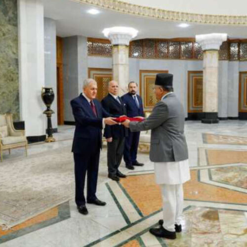 काठमाडौँ । इराकका लागि नेपालका राजदूत घनश्याम लम्सालले त्यहाँका राष्ट्रपति डा अब्दुल्लातिफ जमाल रसिदसमक्ष बुधबार बग्दादस्थित राष्ट्रपति भवनमा आयोजित विशेष समारोहमा आफ्नो ओहोदाको प्रमाणपत्र प्रस्तुत गरेका छन् ।