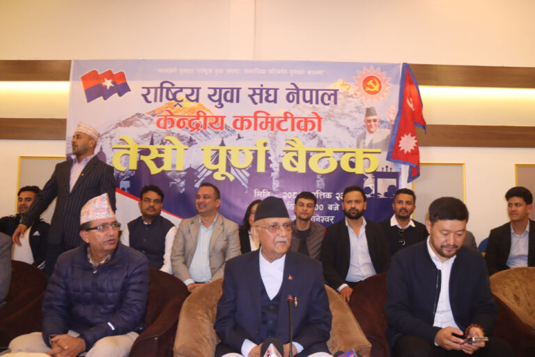 आइतबार राष्ट्रिय युवा संघ नेपालको तेस्रो केन्द्रीय समिति बैठकलाई काठमाडौंमा सम्बोधन गर्दै अध्यक्ष ओलीले युवाको नाममा हिंसा, तोडफोड र आगलागी गराइएको बताएका हुन् ।
