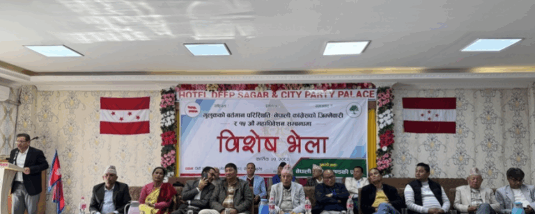‘जनतालाई मालिक मानेर सेवा गर्न कांग्रेसका नेता कार्यकर्ता लाग्नुपर्छ । त्यसका लागि महाधिवेशन हुनुपर्छ । नियमित महाधिवेशनले मात्र पार्टीलाई बलियो बनाउँछ’, सभापति शर्माले भने ।