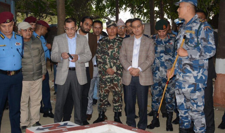 काठमाडौँ । गृहमन्त्री ओमप्रकाश अर्यालले रुपन्देहीको सिद्धार्थ नगरपालिकास्थित भैरहवा–बेलहियामा निर्माणाधीन एकीकृत जाँच चौकी र सशस्त्र प्रहरी बल नेपालको डण्डास्थित त्यहाँको सीमा सुरक्षा गुल्मको निरीक्षण गरेका छन् ।