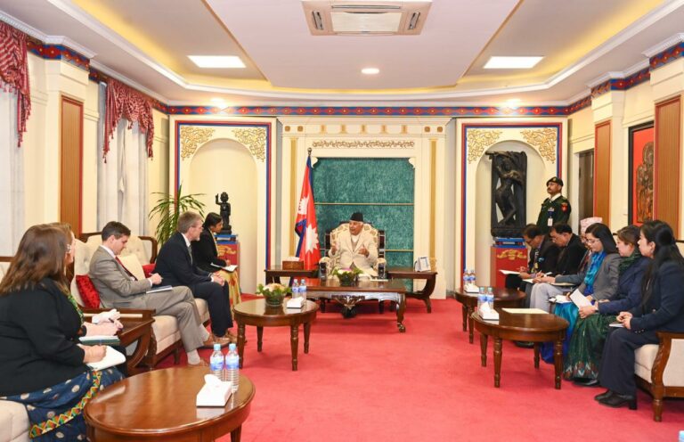 भेटका अवसरमा उनीहरूबीच नेपाल–अमेरिका सम्बन्धका साथै आपसी हित र चासोका विषयमा छलफल भएको राष्ट्रपतिको कार्यालयले जनाएको छ ।