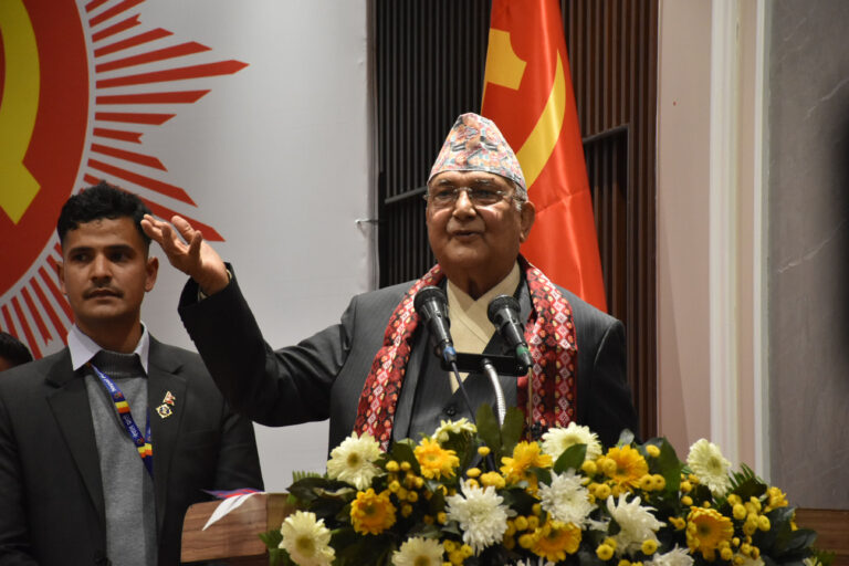 अध्यक्ष ओलीले लोकतन्त्र र संविधान कमजोर पारिएको अवस्थामा त्यसबारेमा चिन्ता गर्नुपर्ने बेला नेपाली कांग्रेस अनावश्यक लडाइँमा फसेको बताए ।