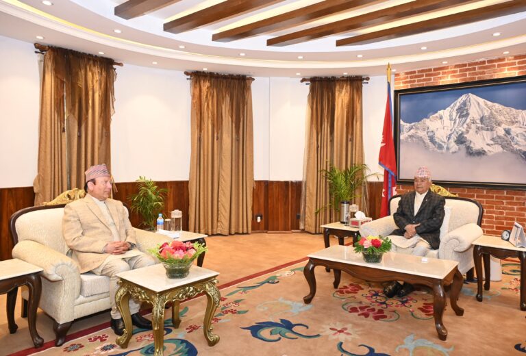 काठमाडौँ । राष्ट्रपति रामचन्द्र पौडेलसँग प्रधानन्यायाधीश प्रकाशमान सिंह राउतले सोमबार भेट गरेका छन् ।