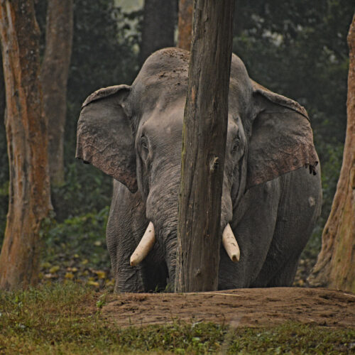 चितवनको सौराहास्थित राष्ट्रिय प्रकृति संरक्षण कोषको हात्तीसारमा रहेको भाले ‘रोनाल्डो ‘ हात्ती र पृष्ठभूमिमा देखिएका गैँडाको बच्चा (केटो-केटी) ।