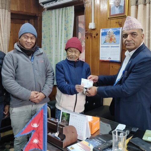 सोलुखुम्बु । सोलुखुम्बुको महाकुलुङ गाउँपालिका–५ की बोल्न नसक्ने एक ६८ वर्षीया वृद्धा गोटाल मनि राईले नेपाली नागरिकता प्राप्त गरेकी छन् । राईलाई प्रमुख जिल्ला अधिकारी अनोजकुमार घिमिरेले आइतबार जिल्ला प्रशासन कार्यालयमा नागरिकता प्रदान गरेका हुन् ।