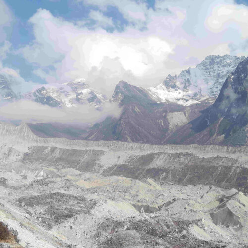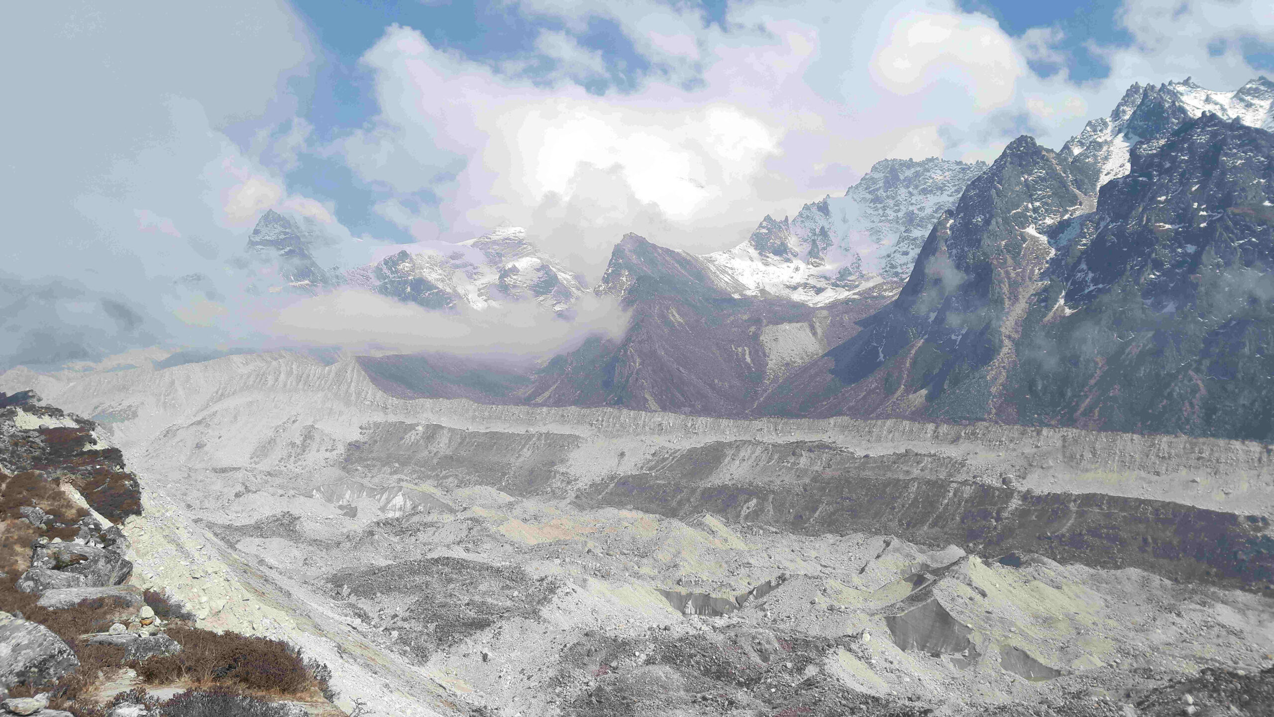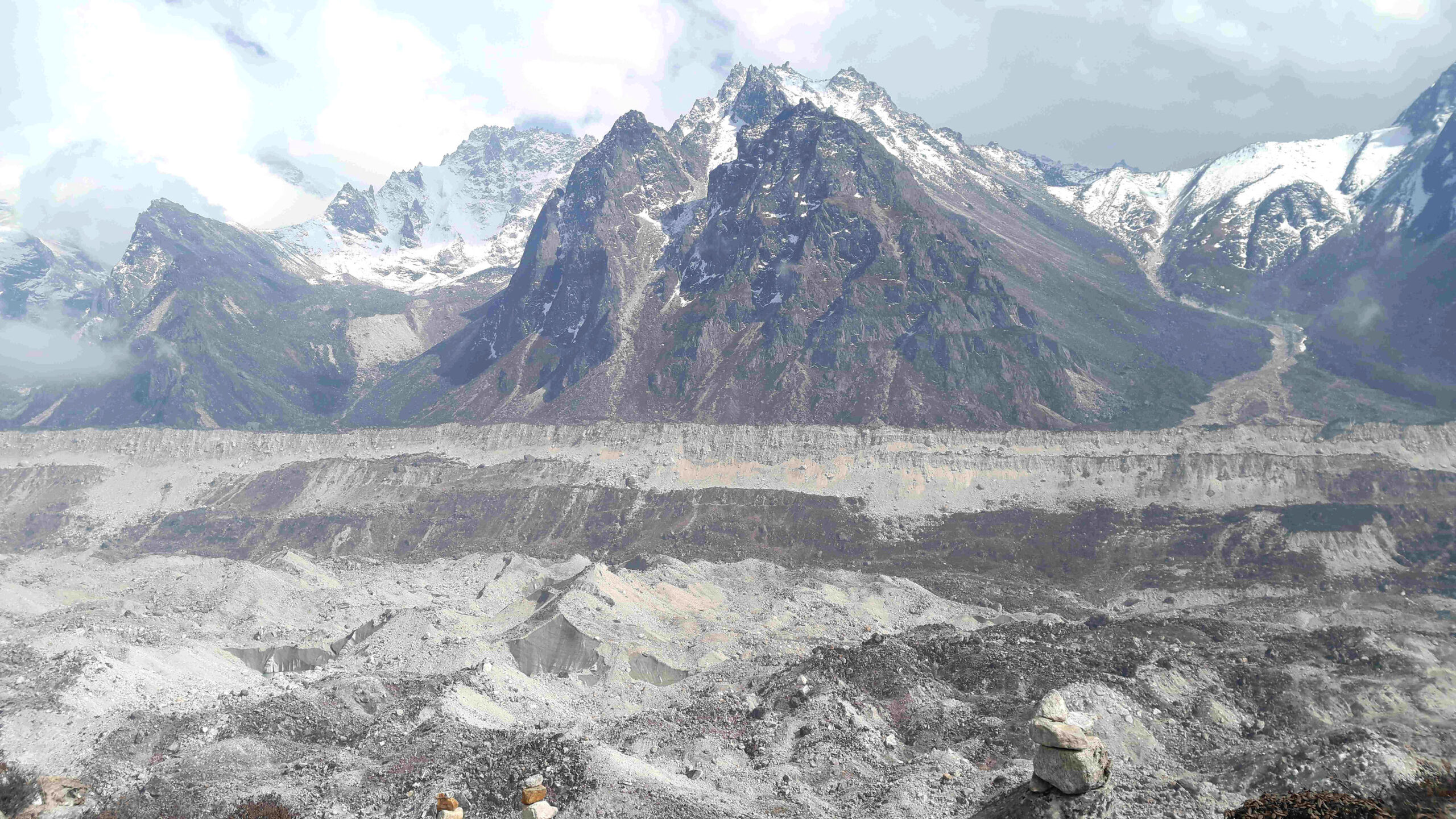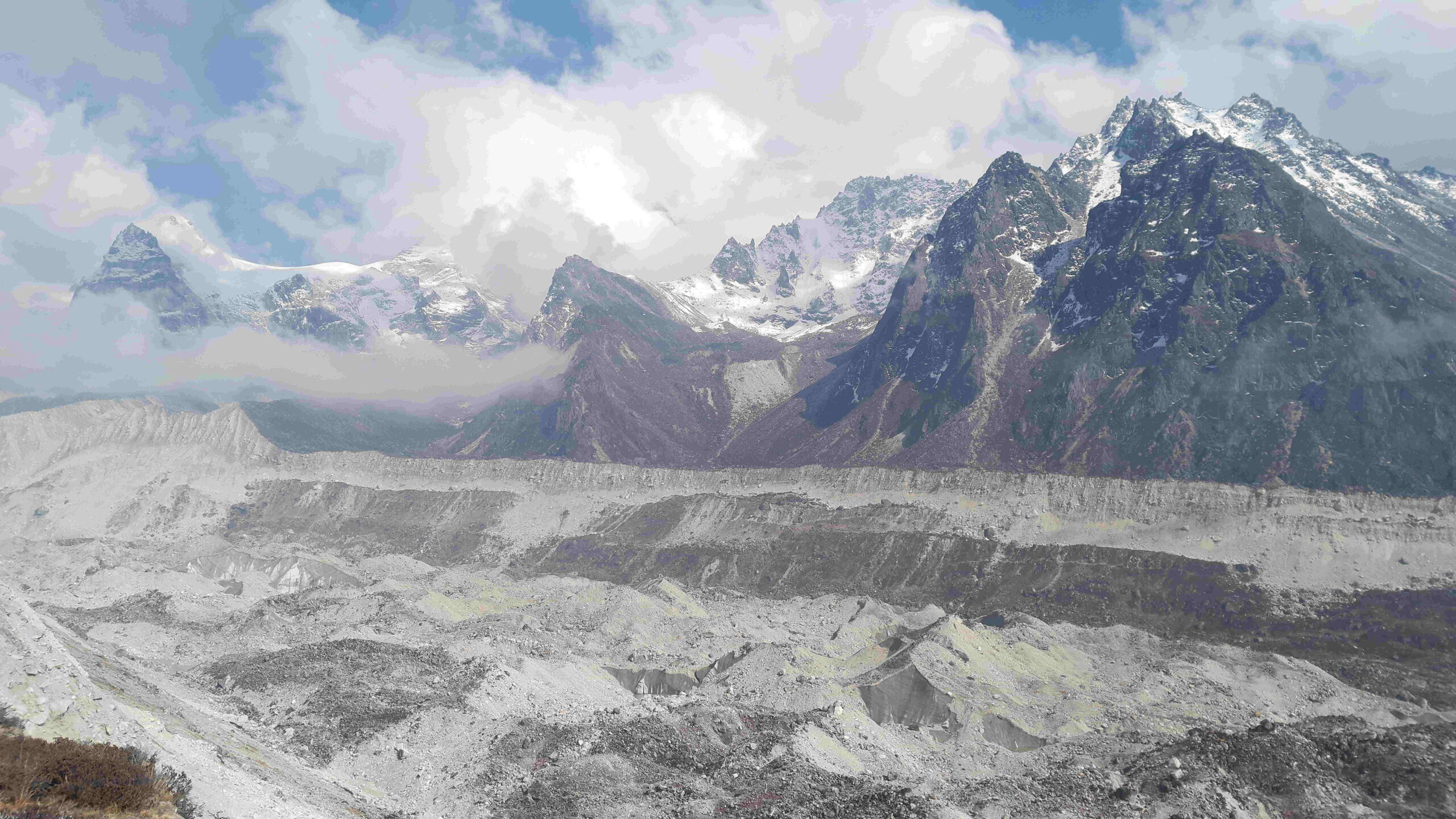 ताप्लेजुङको सिरिजङ्घा गाउँपालिका–८स्थित कञ्चनजङ्घा हिमालको दक्षिण आधार शिविर क्षेत्र । जलवायु परिवर्तन, पग्लिँदो हिउँ र हिमपहिरोका कारण निर्माण भएको गहिरो भौगोलिक चिराले यहाँको वातावरणीय सन्तुलन मात्र होइन, स्थानीय समुदायको दैनिकीसमेत प्रभावित पार्न थालेको छ।