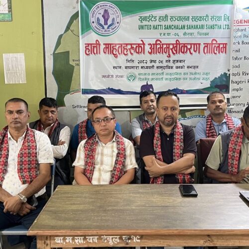 भरतपुर । चितवनको पर्यटकीय नगरी सौराहाको हात्ती सफारी व्यवस्थित गर्न माहुतेलाई प्रशिक्षण दिइएको छ । युनाइटेड हात्ती सञ्चालन सहकारी संस्थाको आयोजना भएको प्रशिक्षणमा सहभागी माहुतेहरुलाई हात्तीको स्याहारसुसार, सफारी व्यवस्थापन तथा कानुनी प्रावधानहरुका बारेमा तालिम दिएको हो ।