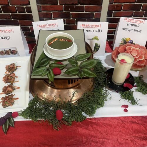 मार्सी भात र कड्कनाथ करी, च्याँख्ला, डिँडोसँग खसीको करङ, नङ्ग्रे सपेटो, इन्द्रेणी मोमो, हाँसको छोइला, रिकीकुर, कन्चेम्वा, गोरस (मही), दही फ्रुट र चिउरा, करेसाबारी फलफूल सलादको प्रदर्शनी आकर्षक र रुचिकर थियो ।