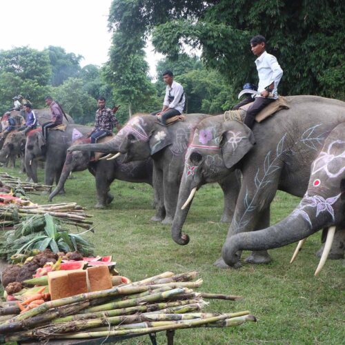 ‘१४औं अन्तर्राष्ट्रिय हात्ती दिवस–२०२५’ को अवसरमा मङ्गलबार चितवनको सौराहास्थित युनाइटेड हात्ती सञ्चालन सहकारी संस्थाको आयोजनामा हात्तीलाई मनपर्ने परिकार खुवाइँदै । यहाँका सरकारी तथा निजी स्वामित्वका ६० वटा हात्तीलाई धान, चना, सख्खर, उखु, मेवा, स्याउ, केरा, गाजरलगायत २० भन्दा बढी परिकार बनभोजको रूपमा खुवाइएको हो ।