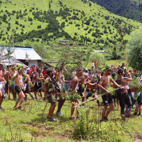 बागलुङ । अर्धनग्न शरीर, मोसोले छोपिएको अनुहार र छाति, कम्मरमा सेतो कपडा बाँधेर हातमा धुपीको हाँगो समातेर केही युवा दौडिँदै थिए। ती युवाका पछि ढ्याङ्ग्रो ठट्याउँदै आइरहेका थिए, झाँक्रीहरू। माथिदेखि दौडिँदै आएको झाँक्री र एक हुल युवाको दृश्य अनौठो थियो। यो अवसरको साक्षी बन्न निसेलढोरमा सयौँ मानिस जम्मा भएका थिए।
