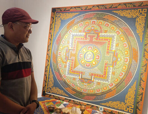 -नारायण ढुङ्गाना, काठमाडौँ । प्रायः क्यानभास वा आर्ट पेपरमा चित्र सिर्जना हुन्छ । तर काठमा पनि क्यानभासमा झै महसुस हुने कला कोर्ने अभ्यास निक्कै नौलो हो । यसमाथि रङ पोतेर होइन, बालुवा चालेर । त्यो पनि थाङ्का कला सिर्जना गर्न दृष्यचित्र उतार्नभन्दा निक्कै कठिन काम हो । नयाँनयाँ कलाको अभ्यास गर्न रुचनाउने कलाकार छेपाल दोर्जे शेर्पाले यसपाली ठमेलमा भइरहेको कला प्रदर्शनीमा त्यही नौलो प्रस्तुति दिएका छन् ।