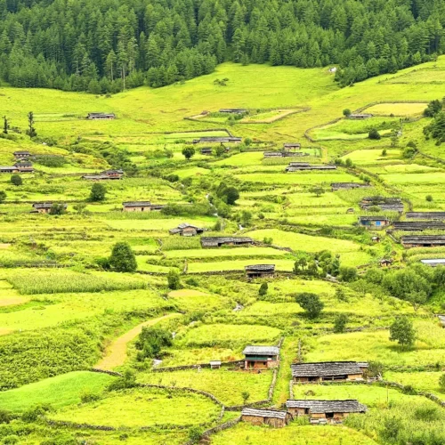 बागलुङको ढोरपाटन नगरपालिका–९ स्थित दिज गाउँ । यस गाउँमा काठले बनेको मात्रै घरहरु छन् । जसले पर्यटकलाई आकर्षित गर्ने गरेको छ । तस्बिर : डम्मर बुढामगर/रासस