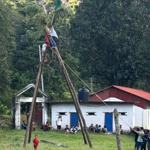 ‘बच्चा हुँदाको झल्को मेटाउन गाउँ आएर लिङ्गे पिङ हालेका छौँ,’ पोखराबाट दशैँ मनाउन धवलागिरी गाउँपालिका–७ हिलापोखरीस्थित जन्मथलोमा आएका खुम पुनले भने, –बाँसको लिङ्गो गाडेर, बाबियोको डोरी बुनेर हालेको पिङमा चचच… हुइइइइ गर्दै मच्चिनुको मज्जै बेग्लै हुन्छ ।’