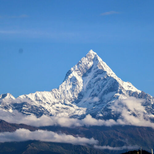 पोखरा महानगरपालिका–१४ गोर्खा भिलेजबाट शुक्रबार बिहान मौसम खुलेसँगै देखिएको माछापुच्छ्रे हिमाल।