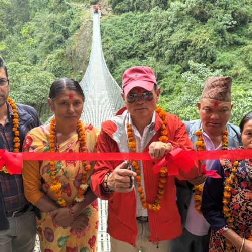 म्याग्दी । मङ्गला गाउँपालिका–४ को न्यूखोलामा निर्माण भएको झोलुङ्गे पुलबाट करिब दुई सय परिवार लाभान्वित भएका छन् । पुलले एक घण्टाको यात्राअवधि ३० मिनेटमा छोटिएको छ ।