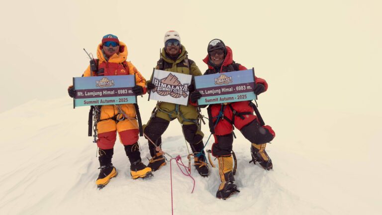 गोरखा । पहिलोपटक आरोहण भएर रोकिएको ५१ वर्षपछि गोरखाका युवाहरूले लमजुङ हिमालको सफल आरोहण गरेका छन् । धार्चे गाउँपालिका–४ लाप्राकका सन्दीप गुरुङ, सुजल गुरुङ र बुद्धबहादुर गुरुङले छ हजार ९८३ मिटर अग्लो लमजुङ हिमाल आरोहण गरेका हुन् ।