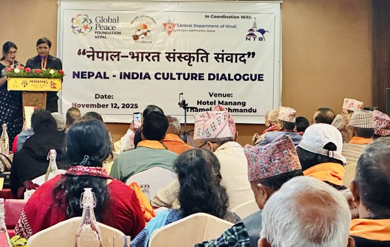 काठमाडौं । ग्लोबल पिस फाउन्डेसन, त्रिभुवन विश्वविद्यालयको हिन्दी विभाग, नेपाल पर्यटन बोर्ड र हिन्दी साहित्य भारती (अन्तर्राष्ट्रिय)को संयुक्त आयोजनामा ‘नेपाल–भारत सांस्कृतिक संवाद’ आयोजना गरिएको छ ।