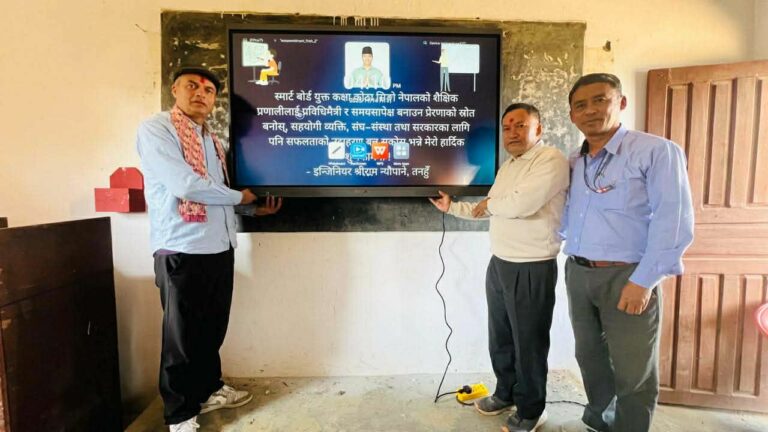पहिलोपटक स्मार्ट बोर्ड शैक्षिक सहकार्य कार्यक्रम सुरु, अब काठमाडौंका कक्षा तनहुँका ग्रामीण विद्यालयमा प्रत्यक्ष रुपमा