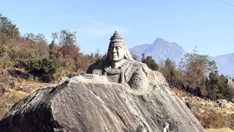 अछाम जिल्लाको साफेबगर नगरपालिका-१२ स्थित धार्मिक तथा पर्यटकिय स्थल खप्तडनैनीमा बिशाल ढुङ्गामा कुदेर बनाइएको भगवान शिवको मूर्ति ।