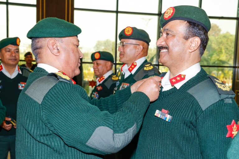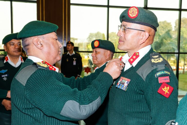 काठमाडौँ । प्रधानसेनापति अशोकराज सिग्देलले जंगी अड्डामा आयोजित कार्यक्रमका बीच शुक्रबार दर्ज्यानी चिन्ह प्रदान गरेका हुन् ।