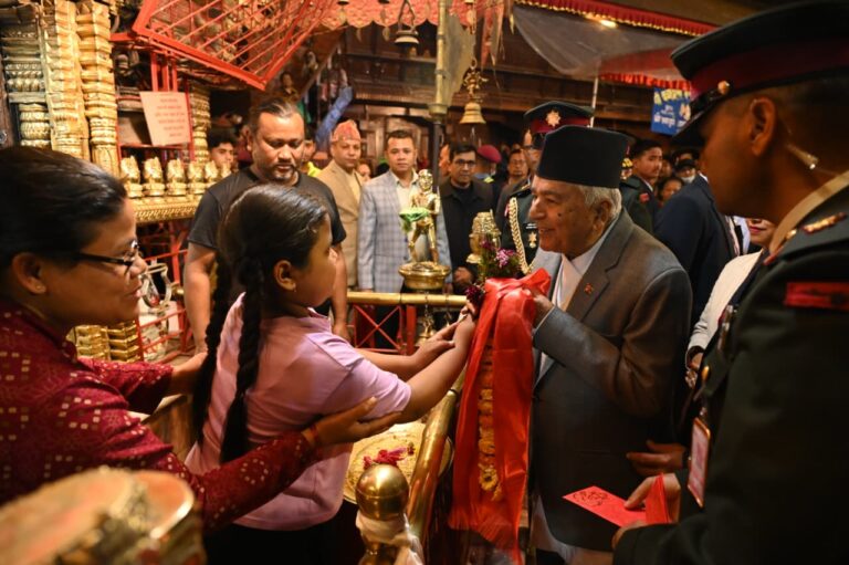 काठमाडौं । राष्ट्रपति रामचन्द्र पौडेलले बिहीबार राति काठमाडौंको असनमा सेतो मच्छिन्द्रनाथको विशेष पूजाअर्चना गरेका छन् ।