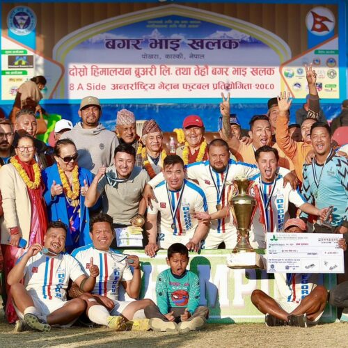 कास्की । पोखरामा सञ्चालन भएको ‘बगर भाइखलक अन्तर्राष्ट्रिय भेट्रान एट ए साइड’ फुटबल प्रतियोगितामा पोखराको सङ्गम भेट्रान र काठमाडौँको जोरपाटी भेट्रान च्याम्पियन बनेका छन् ।