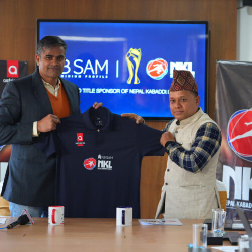काठमाडौँ । एस्ट्रोनिक्स म्यानेजमेन्टले नेपाल कबड्डी लिग (एनकेएल) का लागि ‘टाइटल स्पोन्सर’ को रुपमा केबी सामलाई भित्राएको छ । फ्रेन्चाइज टिमको अवधारणामा आयोजित प्रतियोगिता अब ‘केबी साम नेपाल कबड्डी लिग’को नामले सञ्चालन हुनेछ ।