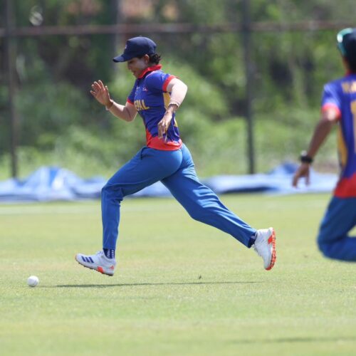 नेपालका लागि राजमति ऐरी र मनिषा उपाध्यायले समान एक/एक विकेट लिए । नेपाल अहिले जवाफी ब्याटिङमा उत्रेको छ ।