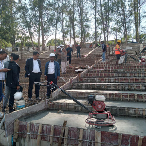 “प्रयोगशालामा गुणस्तर नियन्त्रण गरिएका कङ्क्रिटमाथि उच्चस्तरको ‘फ्लोर हार्डनर’ प्रयोग गरिएको छ । रंगशालाको कङ्क्रिट सतह अत्यधिक घोटिने भएकाले यसको प्रयोग गरिएको हो’, उनले भने,“ रङ्गशालाको भूबनोटअनुसार पश्चिमी र दक्षिणी भागको जमिन मैदानभन्दा अग्लो भएका कारण जमिनकै सतहमाथि पिसिसी गरी ढलान गरिएको छ । पूर्वी भागको जमिन भने मैदान सरहकै भएका कारण पिलर उठाएर आवश्यक स्लोप कायम गरिएको छ । सबै कार्य जेठ महिनाको अन्त्यसम्म सम्पन्न गर्ने लक्ष्य छ ।”