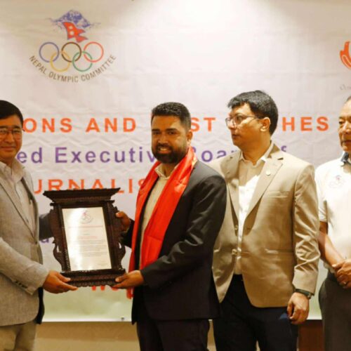 एनओसीद्वारा बुबार आयोजित नेपाल खेलकुद पत्रकार मञ्च (एनएसजेएफ)को नवनिर्वाचित पदाधिकारी र सदस्यहरुलाई बधाई तथा शुभकामना प्रदान गर्ने कार्यक्रममा उनले नेपालको खेलकुदलाई सही बाटोमा लग्न, नेपाली खेलाडीलाई उन्नत बनाउन र खेलको महत्वलाई बुझाउन जिम्मेवारीपूर्वक अगाडि बढिरहेको बताए ।