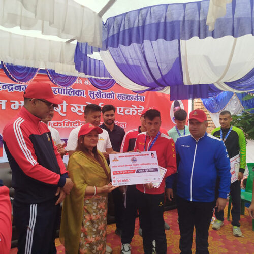 यसैगरी, महिलातर्फ प्रथम हुने कल्पना बुढा, दोस्रो सन्देला बुढा, तेस्रो निरुता ढकाल, चौथो सृष्टि जोशी र पाँचौँ स्थान हासिल गर्ने निर्मलाकुमारी खड्कालाई पुरुष खेलाडी सरह नै नगद पुरस्कार प्रदान गरिएको छ । यस्तै, छैटौँदेखि दशौँ स्थान प्राप्त गर्ने सोमिता बडुवाल, नेहा देवकोटा, आरुसी टोलाङ्गी, गङ्गाकुमारी भट्टराई र आयुस्मा रावतलाई जनही रु एक–एक हजार नगद पुरस्कार दिइएको थियो ।
