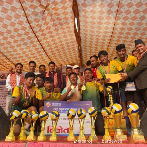त्रिवेणी । तेस्रो रुुकम कप भलिबल प्रतियोगिताको उपाधि नवलपुरको बौदीकालीले जितेको छ । मुसिकोट नगरपालिका–१ खलङ्गामा सम्पन्न फाइनल खेलमा बौदीकालीले रुकुम पश्चिमको हाम्रो सरोकार टोलीलाई पराजित गरेको हो ।