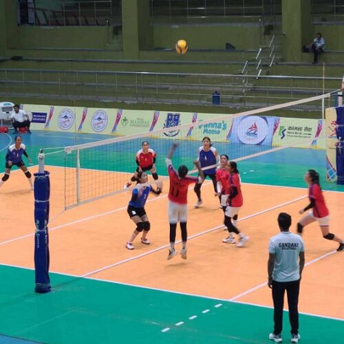 कास्की । पोखरामा जारी ‘प्रचण्ड कप’ राष्ट्रिय महिला भलिबल प्रतियोगिताको उपाधिका लागि दुई विभागीय टोली नेपाल पुलिस क्लब र सशस्त्र प्रहरी बलको एपिएफ क्लब फाइनलमा प्रवेश गरेका छन् । पोखरा रङ्गशालास्थित बहुउद्देश्यीय कभर्ड हलमा शुक्रबार भएको सेमिफाइनल खेल जित्दै यी दुई टोलीले फाइनलको यात्रा तय गरेका हुन् ।