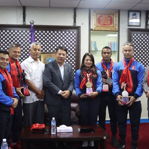 भुटानको थिम्पूमा गत जुन ११ देखि १५ सम्म भएको प्रतिस्पर्धामा नेपालले विभिन्न समुहतफृ उपाधि जितेको थियो । कार्यवाहक प्रधानमन्त्री सिंहले शहरी विकास मन्त्रालयमा सोमबार विजेता खेलाडीहरुलाई सम्माानसहित बधाई ज्ञापन गरेका हुन् ।