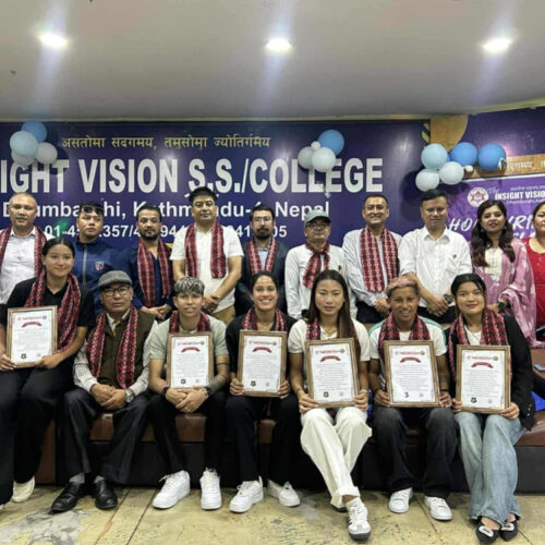 काठमाडौँ। एउटै व्यवस्थापमा सञ्चालित द इन्साइट भिजन सेकेन्डरी स्कुल र राजधानी क्याम्पसले एएफसी वुमेन्स एसियन कप छनोटमा उत्कृष्ट प्रदर्शन गरेकी कप्तान सावित्रा भण्डारीसहित १० खेलाडीलाई बधबार नगद र छात्रवृत्तिसहित सम्मान गरेको छ ।